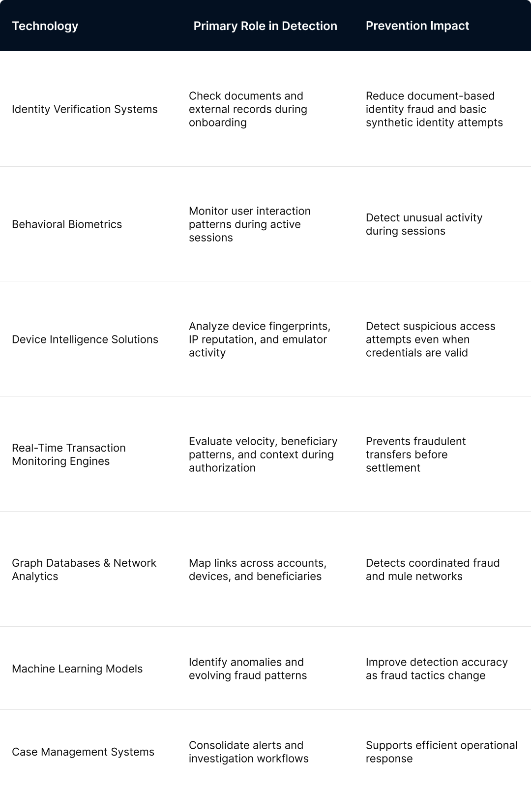 Each control addresses a specific exposure point. However, their effectiveness ultimately depends on how well the system experience is designed across stages. For this reason, detection weakens when onboarding, authentication, and transaction monitoring operate as separate checkpoints.